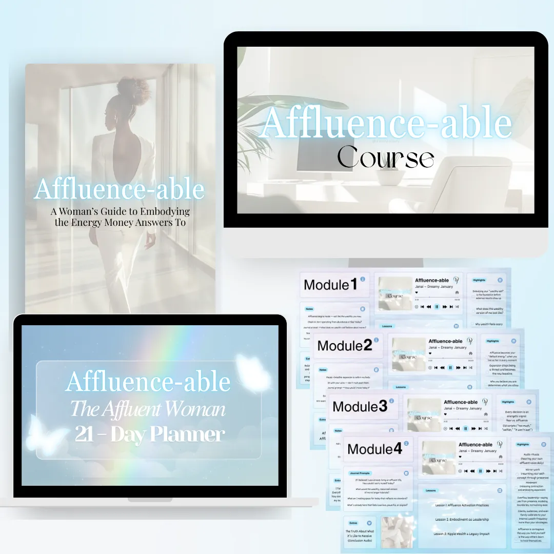 Affluence-Able is a rich, in-depth invitation to recalibrate your identity, nervous system, and self-concept to match the version of you who receives with ease, moves with certainty, and leads with quiet power. This guide is about becoming the energy that affluence responds to.